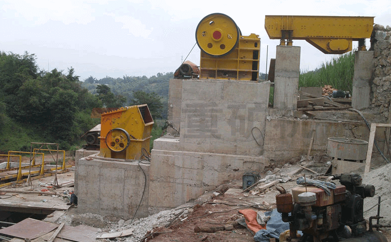 设备配置:振动喂料机、颚式破碎机、重锤破碎机、振动筛、皮带机等设备。
