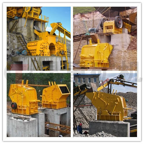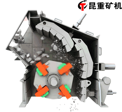 反击式破碎机的工作原理和锤式破碎机相近,都是利用高速回转的锤头冲击物料而使之破碎的,不过两者的破碎过程却不尽相同。当物料进入破碎腔后即受到高速回转的板锤的冲击而进行选择性破碎。物料从冲击过程中获得巨大的动能,并以高速抛向第一级反击板,由于反击板的反击作用,物料再次受到破碎,被反击板弹回来的物料又再次受到板锤的冲击,继续重复上述破碎过程。之后,此破碎物料又同样以高速被抛向第二级反击板,进一步得到破碎。这样,物料经过板锤、反击板的连续多次撞击作用以及物料之间的相簿碰撞作用,便不断沿自身的节理面产生裂缝、松散而被破碎。其力度小于板锤和反击板之间的缝隙时,就从机器下部排出成为合格产品。在砂石厂联破作业一般配置在颚式破碎机后面。