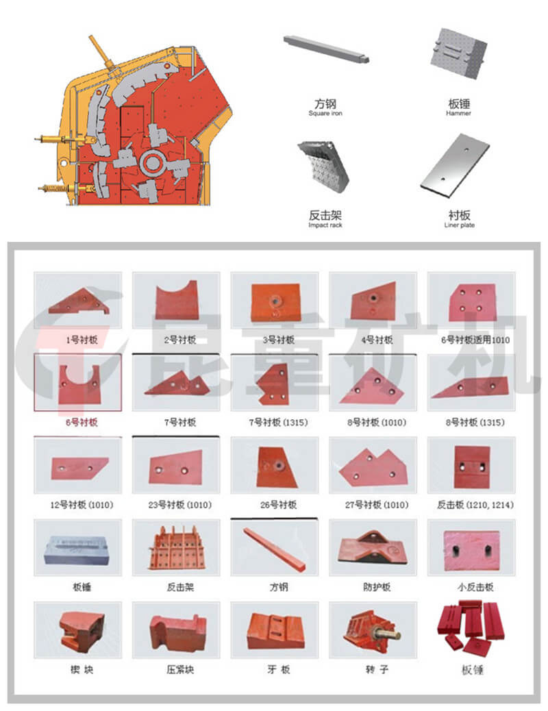 反击板与板锤间隙能方便调节,有效控制出料粒度,颗粒形状好。