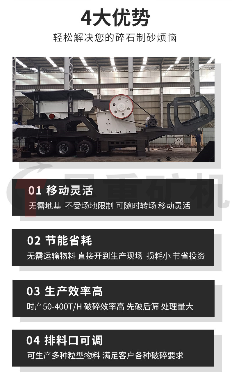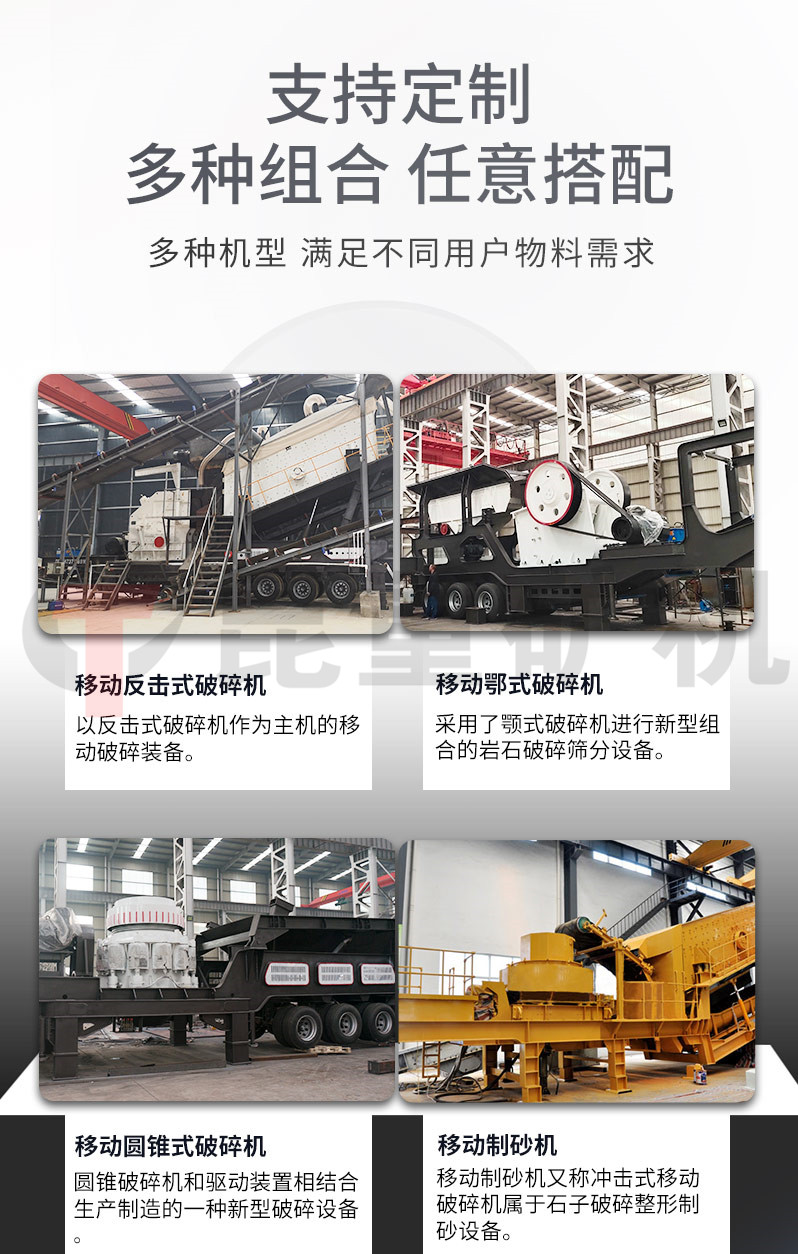 轮胎式移动破碎机是矿机根据市场发展需求制作的新型破碎机设备。广泛用于选矿矿石破碎、砂石骨料生产、建筑垃圾回收、高速公路、铁路、基础建设等行业。轮胎式移动破碎机的设计理念就是随走随打,转场方便,免安装、免运输、流动性强等特点。