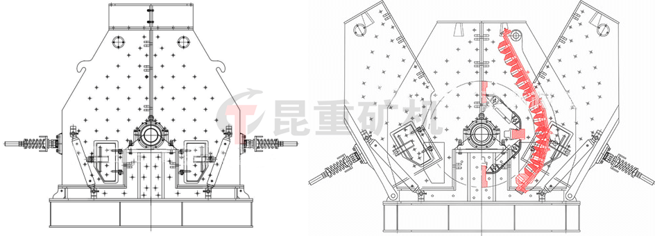 5、进料大、出料快、排料口间隙可调,保证了出料粒度。