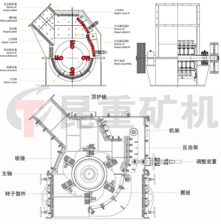 3、板锤采用多元合金成材质,高硬度、高韧性、高耐磨,使用寿命是普通材质的3倍。